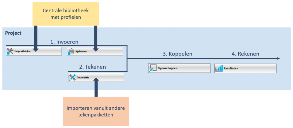 Er zijn verschillende mogelijkheden om de geometrie te importeren. De import van een 2D CAD tekening is een snelle manier om een goede geometrie op te zetten. Lees eenvoudig een enkel lijnig .dwg of .dxf in.