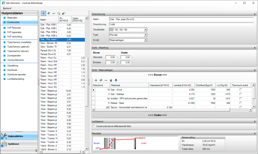 Zodra je een Sjabloon, vanuit de centrale bibliotheek kopieert naar je project, zullen alle Hulpmiddelen die daaraan gekoppeld zijn ook worden gekopieerd naar het project. Zo kun je dus bijvoorbeeld eenvoudig het bouwkundig sjabloon Houtskeletbouw (Rc=3,5) naar je project kopiëren, waarbij ook de constructies en de materialen waaruit de constructies bestaan naar het project gekopieerd worden.