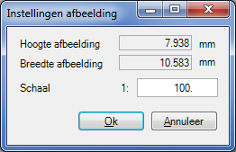 Open de import wizard onder Geometrie – Plaats 2D tekening als onderlegger. Het aanroepen van de optie geeft direct de mogelijkheid de file welke als onderlegger moet dienen te kiezen. Na het kiezen van de file verschijnt er een scherm waar je de hoogte, breedte en schaal van de afbeelding kunt invoeren.