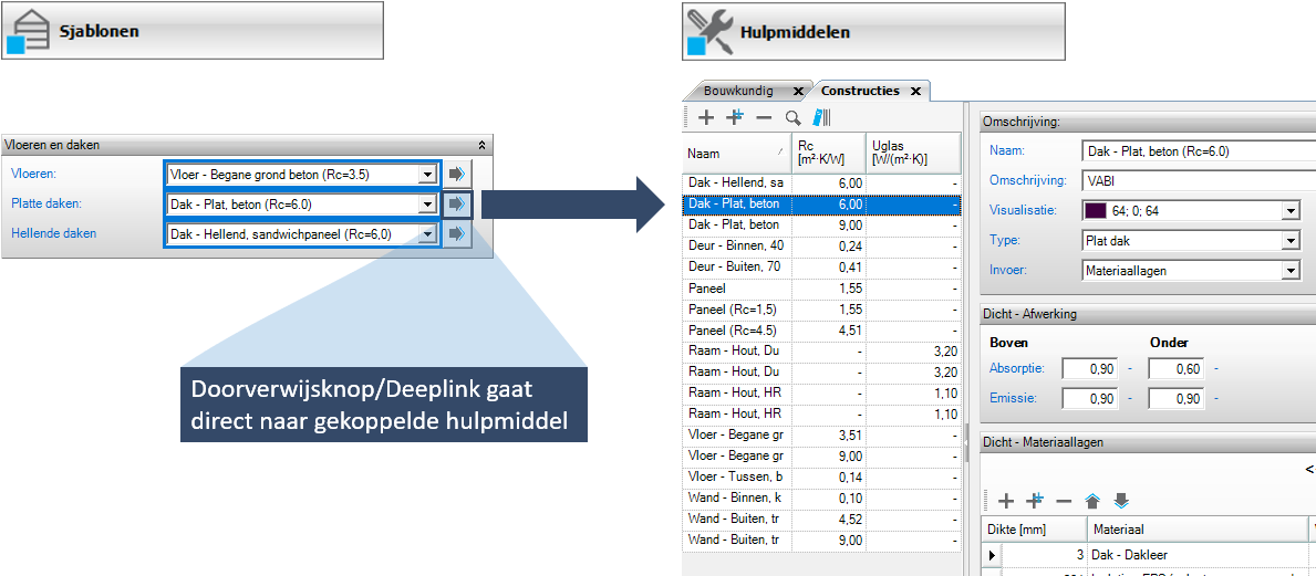 In de sjablonen zijn verschillende hulpmiddelen gekoppeld. Wanneer je de invoer wilt controleren of aanpassen, kun je heel gemakkelijk met de doorverwijsknop vanuit het sjabloon naar het desbetreffende hulpmiddel gaan. Met behulp van de doorverwijsknop wordt er een nieuw tabblad geopend van het gewenste hulpmiddel, die vervolgens net zo eenvoudig weer gesloten kan worden.