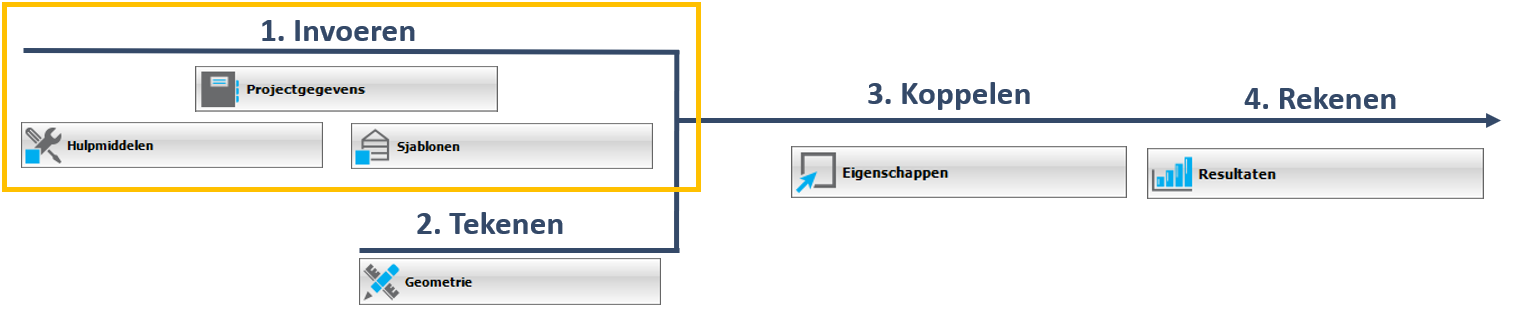 Selecteer eerst een processtap en vervolgens het bijbehorende menu-item om de invoergegevens te kunnen vullen.