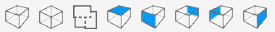 Kies uit verschillende aanzichten. 3D perspectief, 3D parallel, plattegrond en zijaanzichten.