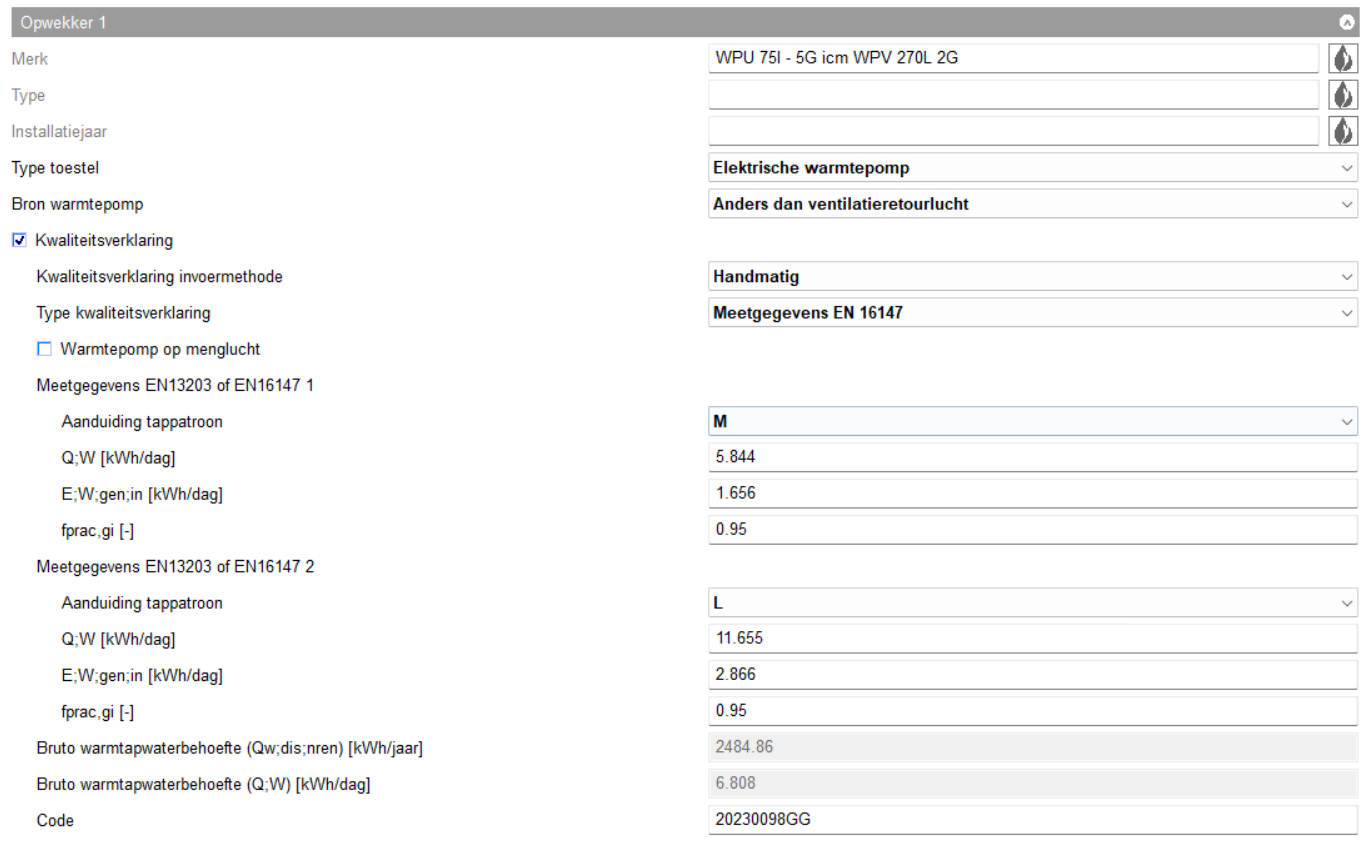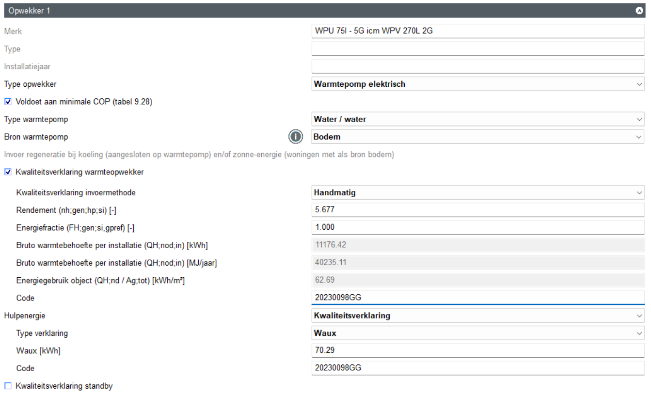 Activeer het vinkje ‘Kwaliteitsverklaring koude opwekker’