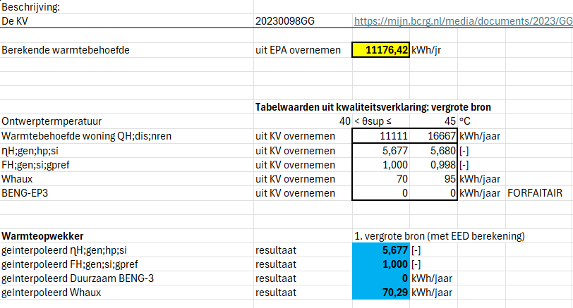 ✓ Controleer of de geïnterpoleerde waarden correct zijn overgenomen in Vabi EPA