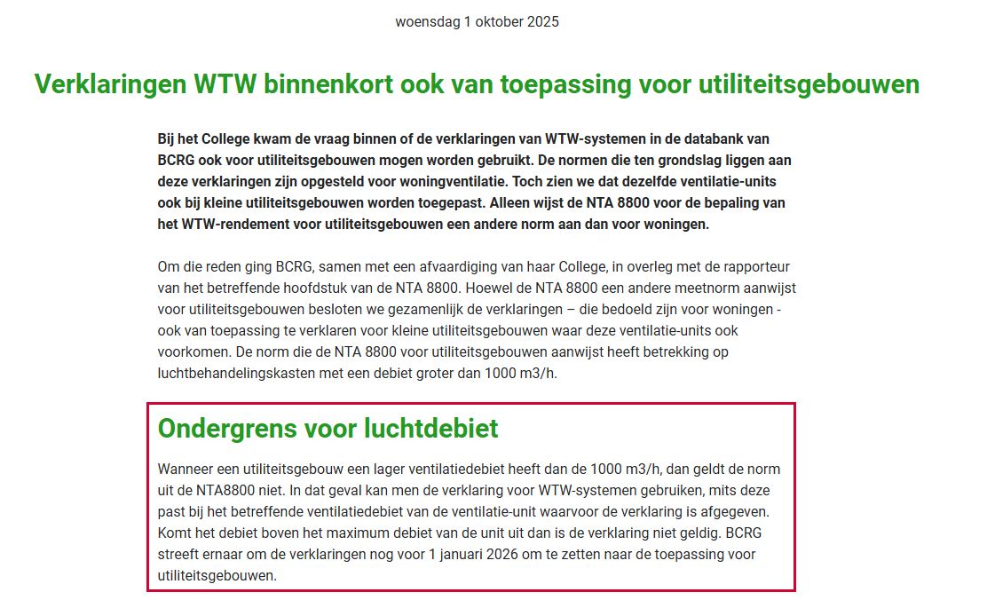 WTW verklaringen zijn ook voor utiliteit toe te passen, zie nieuwsbericht van BCRG: