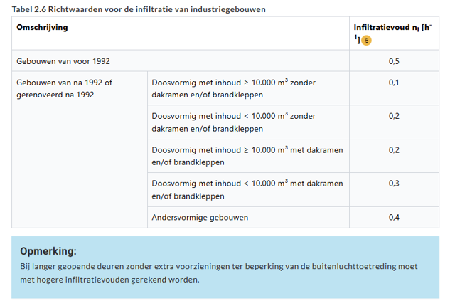 ISSO 57 industial contains a table for infiltration: table 2.6.