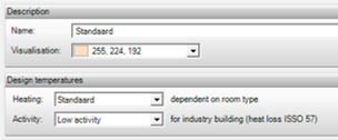 For ISSO 57 Industry the standard design room temperature depends on the activity.