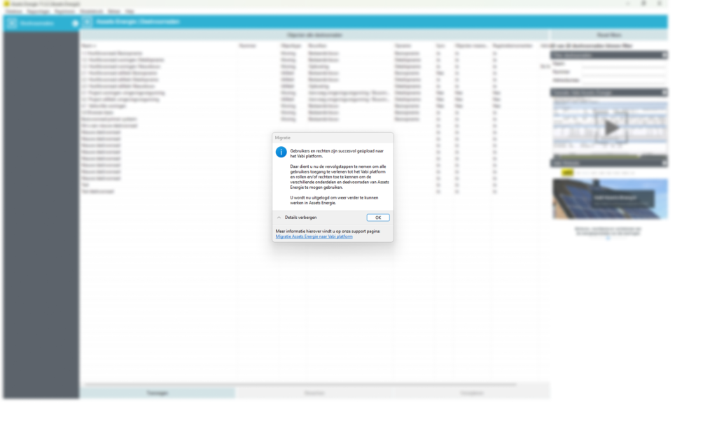 Om het overzetten van gebruikers en deelvoorraden te kunnen uitvoeren heb je minimaal versie 11.2.2 van Vabi Assets Energie on-premise nodig. Download hier de laatste versie.