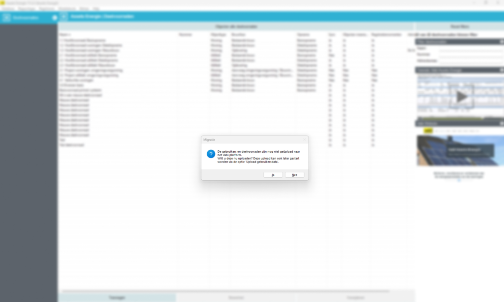 - Wanneer je de software opent verschijnt er een melding om de gebruikersupload te starten. Klik in deze melding op Ja. Hierna wordt de gebruikersupload automatisch gestart.