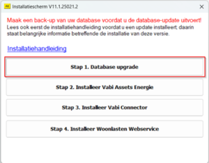 2. Klik in het installatiescherm op de knop [Installeer Vabi Assets Energie (op client)]