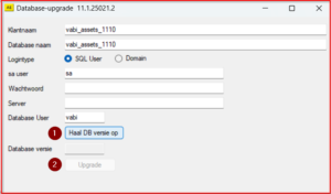 Voor gebruik van Vabi Assets Energie wordt er gebruik gemaakt van een database, om een database te upgraden op de database server kunt u onderstaande stappen volgen: