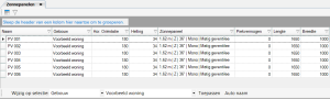 Hier bij Eigenschappen – Zonnepanelen kan je de eigenschappen inzien van de zonnepanelen die je geplaatst hebt in de Geometrie. Ook kan je hier de naam van het zonnepaneel aanpassen en bij welk gebouw het zonnepaneel hoort. Voor meer informatie over wat je met zonnepanelen kan, lees je dit nieuwsartikel Zonnepanelen in Gebouwsimulatie.