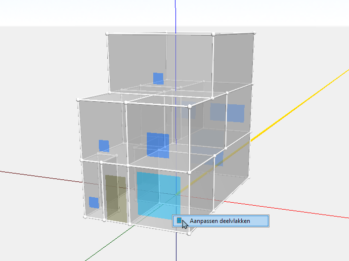 Je kunt hier een raam, deur, paneel of deelconstructie toevoegen in een bestaand vlak. Dit kan zowel een dak als een vloer als een wand zijn.