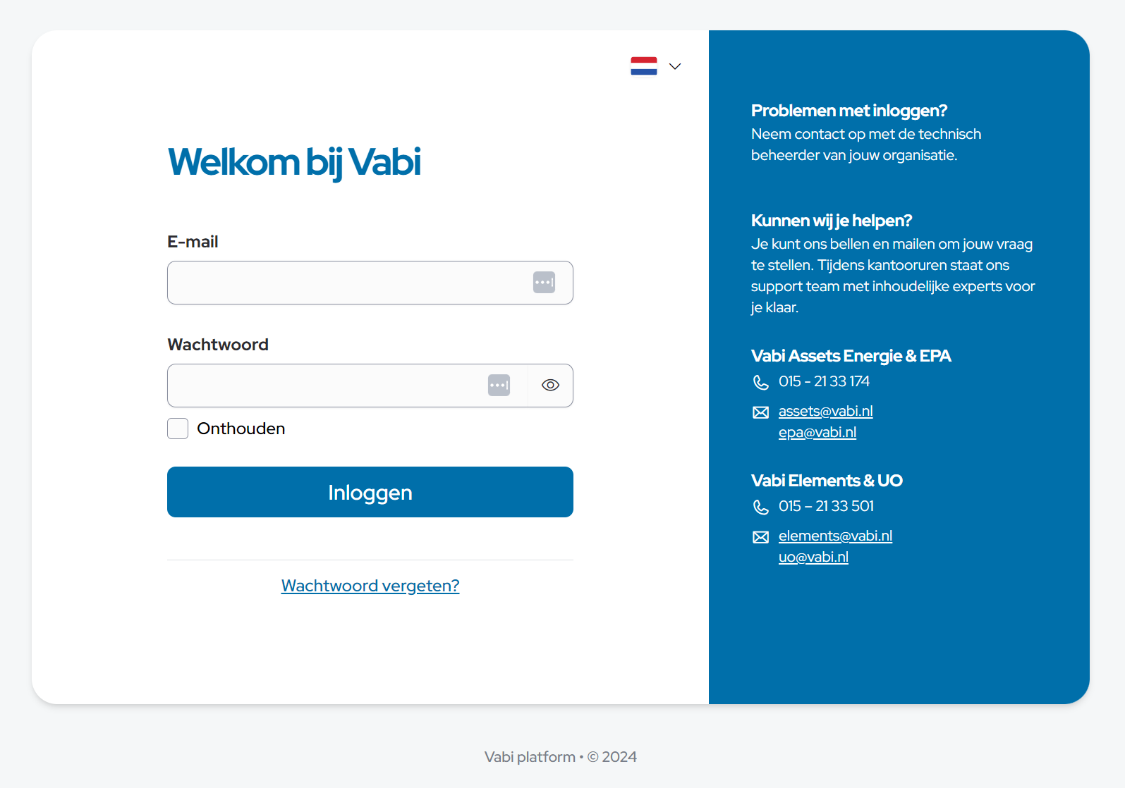 Vanaf de 3.12 release van Elements is het nieuwe Vabi klantportaal beschikbaar.