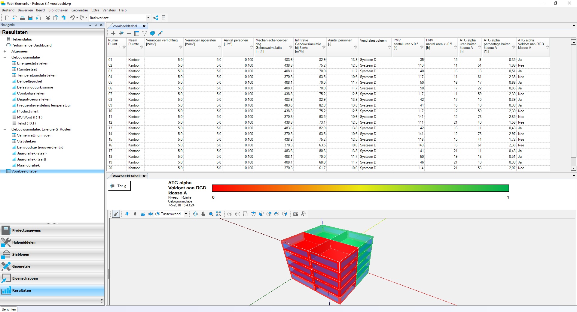 Er zijn meer resultaten toegevoegd, zoals bijvoorbeeld de ATG-comfortklasse resultaten. Je kunt bij de ruimte-eisen aangeven op welke ATG-comfortklasse je wilt toetsen en in de uitvoertabellen worden dan alleen deze resultaten getoond. Ook controleer je de invoer eenvoudig en snel door het zelf toevoegen in de configureerbare tabellen. Enerzijds visualiseer je zo welke eigenschappen aan welke ruimten zijn gekoppeld. Anderzijds kun je overzichtelijk analyseren welke gevolgen jouw invoer heeft voor de resultaten. Het biedt je optimale controle waar de invoer- en uitvoerresultaten in één tabel zitten en je zo kunt visualiseren en exporteren.