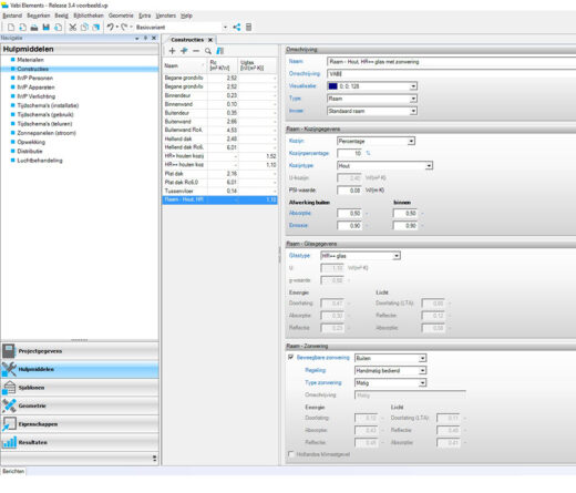 Wordt in jouw project klimaatramen toegepast of overwogen? Met Vabi Elements Gebouwsimulatie 3.4 simuleer je de effecten op energie en comfort. Hiervoor hoef je geen ingewikkelde glasnetwerken te maken, maar je doet dit gewoon in het constructiescherm. Kies daar voor een standaard raam of een klimaatraam. De simulatie past zich automatisch aan het gekozen glasconcept aan. Ook de Hollandse klimaatgevel kan worden berekend als je beweegbare zonwering aan de binnenzijde hebt.