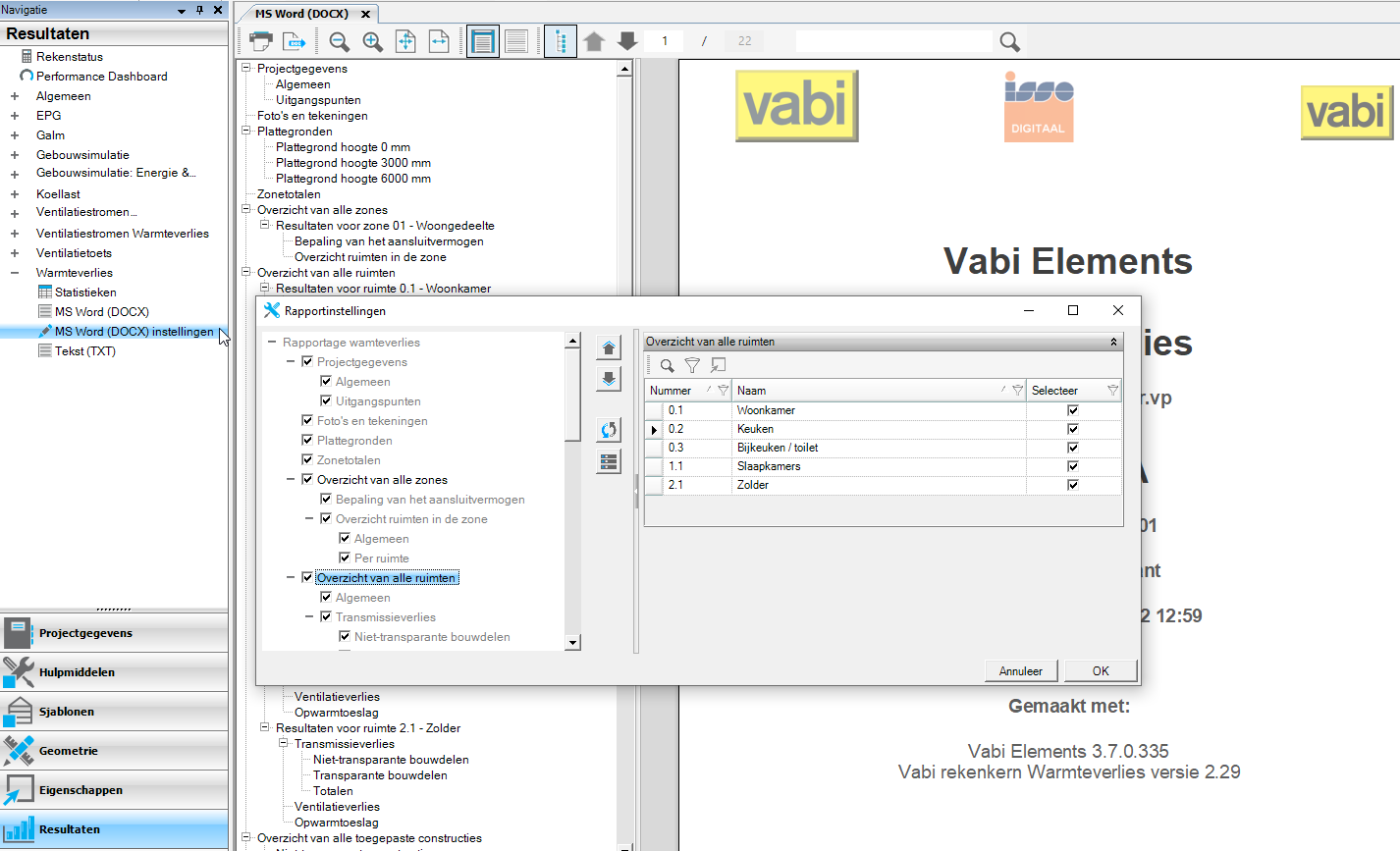 • Stel nu de instellingen van flexibele rapportage voor je met de berekening begint in en bouw sneller je rapporten. Nog een voordeel van deze mogelijkheid is dat de bestandsgrootte van een project wordt teruggebracht.
