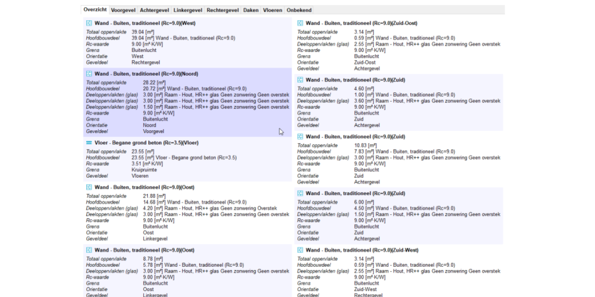 • De oriëntatie wordt nu automatisch ingevuld, waarbij de wanden die de oriëntatie Noord hebben in Elements, de oriëntatie Voorgevel krijgen enz.