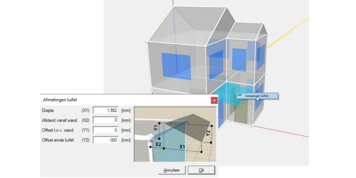 Pas met deze sneltoets de afmetingen van de luifels aan.
