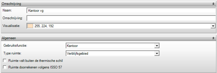 De gebruiksfunctie, type ruimte, functie van de ruimte (en bezettingsgraad) wordt gebruikt voor het definiëren van de ontwerptemperaturen.
