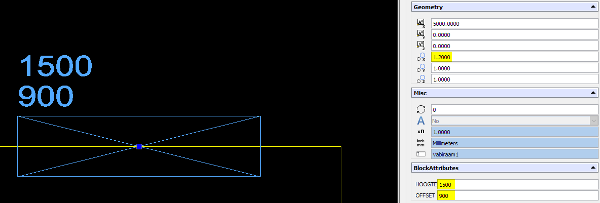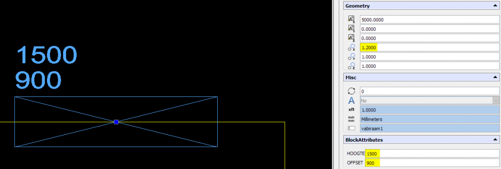 Hier selecteer je uit de lijst van aanwezige attributen (attributes) in het block die de offset, ofwel de hoogte van de onderkant van het kozijn ten opzichte van de vloer vaststelt.