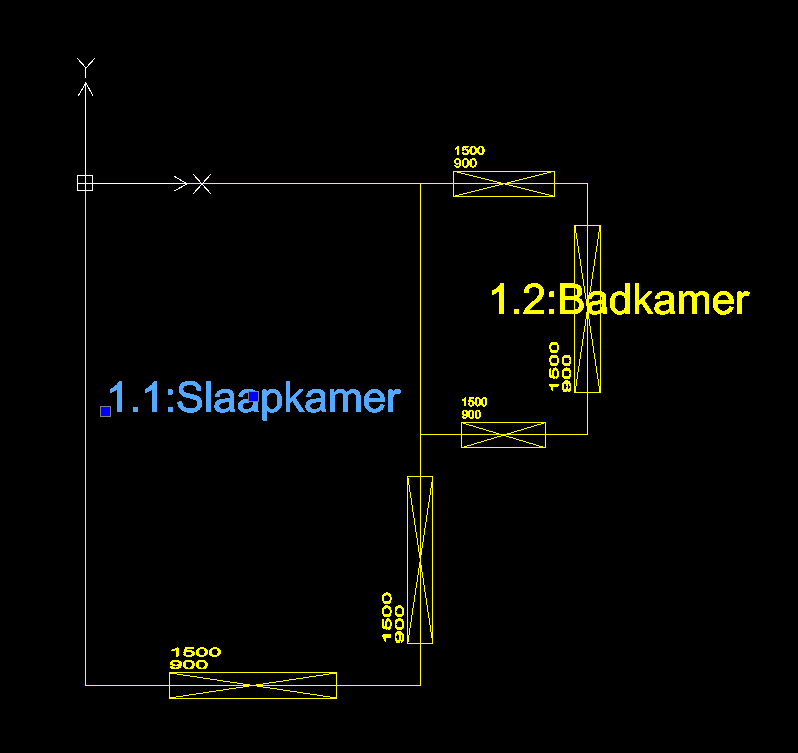 Je krijgt de eerste tekenlaag te zien met eventueel de namen in de ruimtes en de blocks met ramen, deuren en panelen.