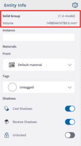 Uiteindelijk moeten de ‘groepen’ als ‘Solid Group’ aangemerkt zijn. Deze informatie is te vinden op het ‘Entity Info’ venster (rechts in het scherm of met een rechtermuisklik).