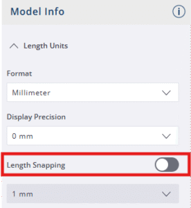 Kleine, onbedoelde, afwijkingen in een Sketchup model kunnen leiden tot grote problemen tijdens de import in Vabi Elements. Om secuur te werk te gaan, is het verstandig om de functie ‘Length Snapping’ uit te schakelen onder het venster ‘Model Info’. Op deze manier zorg je ervoor dat een ruimte onbedoeld groter wordt getekend dan de bedoeling is. Vabi Elements zal het model alleen correct importeren als een ruimte correct ‘gesloten’ is en er geen afwijkingen in de maatvoering zijn.