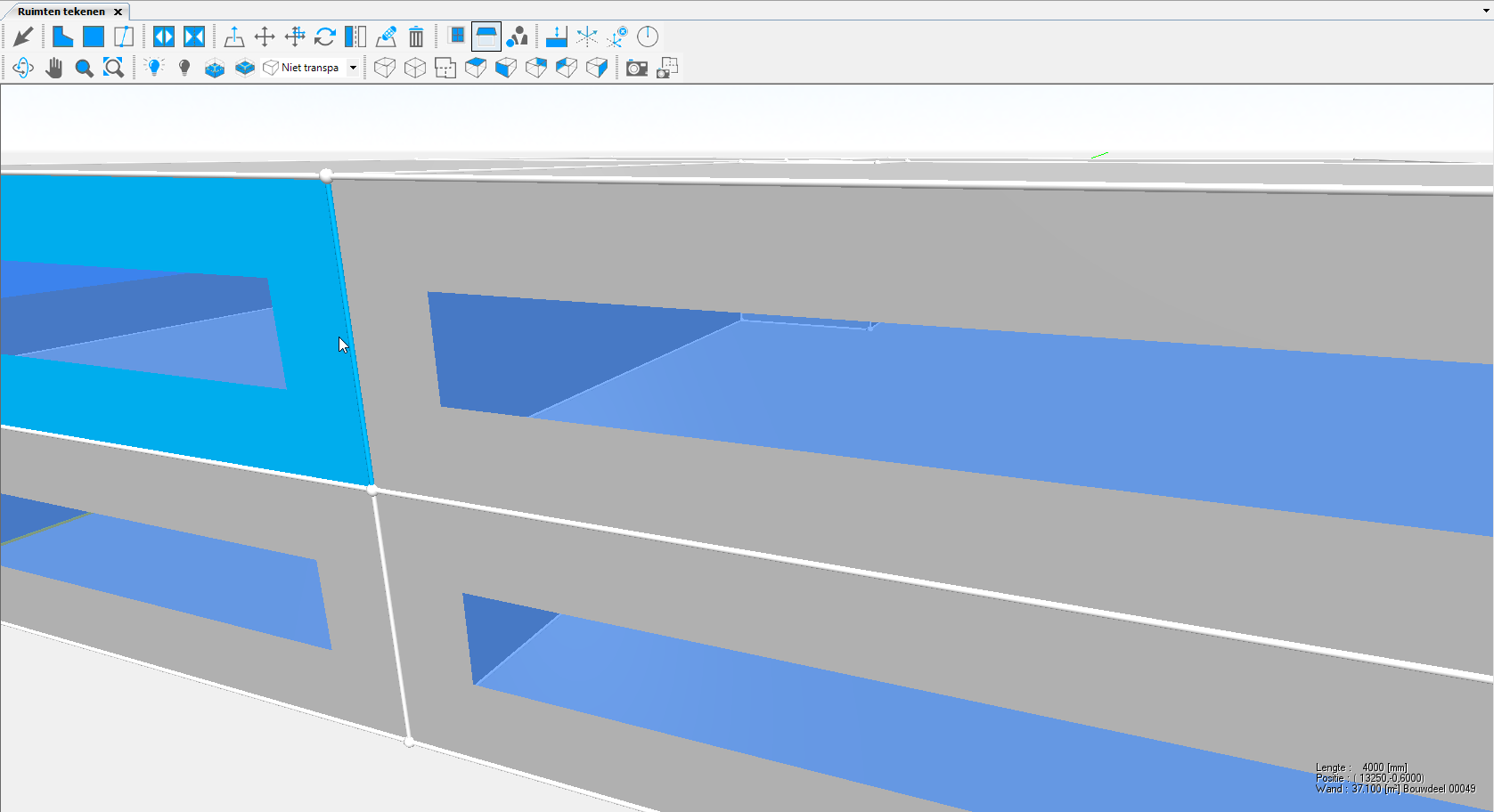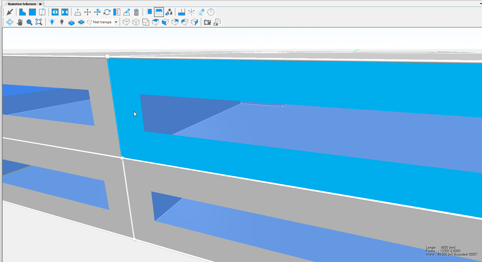 - Bouwdelen worden automatisch samengevoegd. In de opmerkingen van het bouwdeel staan de oorspronkelijke bouwdelen en ruimtes genoemd.