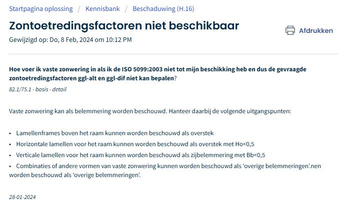 Als de horizontale lamellen onder een vaste hoek staan, die naar boven gericht is, dan neem de deze niet mee in de EP-berekening.