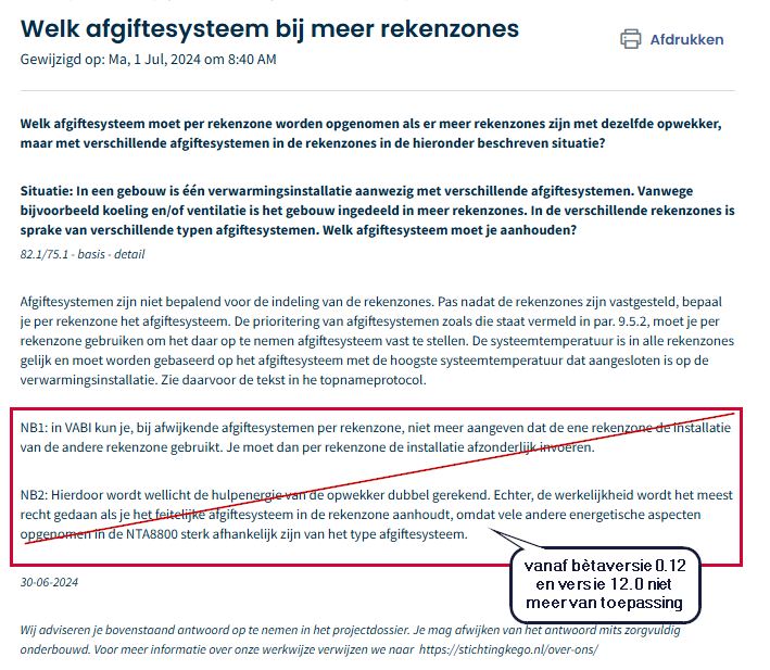 Als een gebouw meerdere rekenzones heeft, dan is het vanaf nu mogelijk om binnen hetzelfde verwarmingssysteem met een andere afgiftesysteem te rekenen, bijvoorbeeld een woning met op de begane grond vloerverwarming en op de verdiepingen radiatoren.