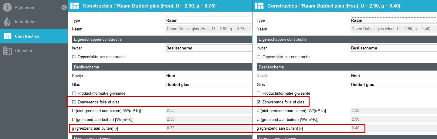 • g-waarde zonwerende folie en zonwerend glas (Utiliteit)