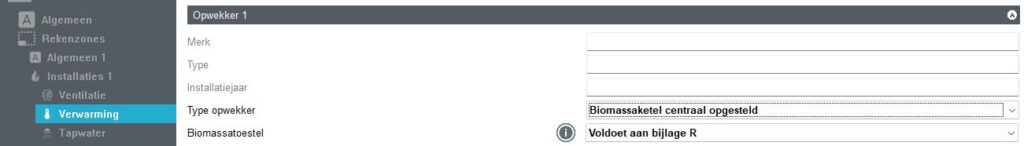 Voor kachels en ketels gestookt op vaste biomassa moet je nog een aantal gegevens opnemen: