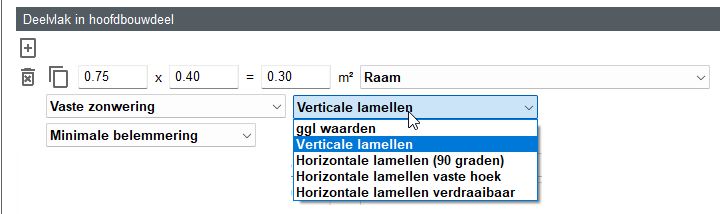 Als de horizontale lamellen onder een vaste hoek staan, die naar boven gericht is, dan neem de deze niet mee in de EP-berekening.