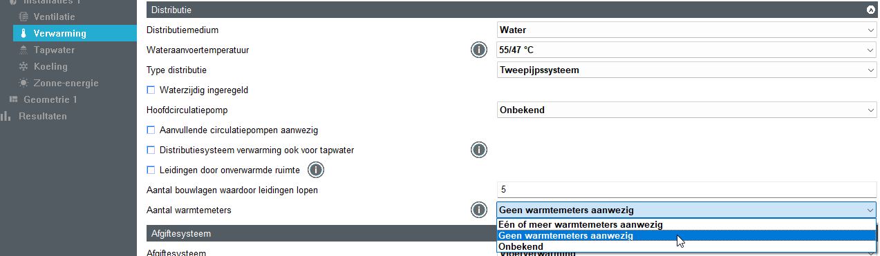 Voorheen kon je het aantal warmtemeters opgeven, dit is aangepast naar het vaststellen of er warmtemeters aanwezig zijn of niet.