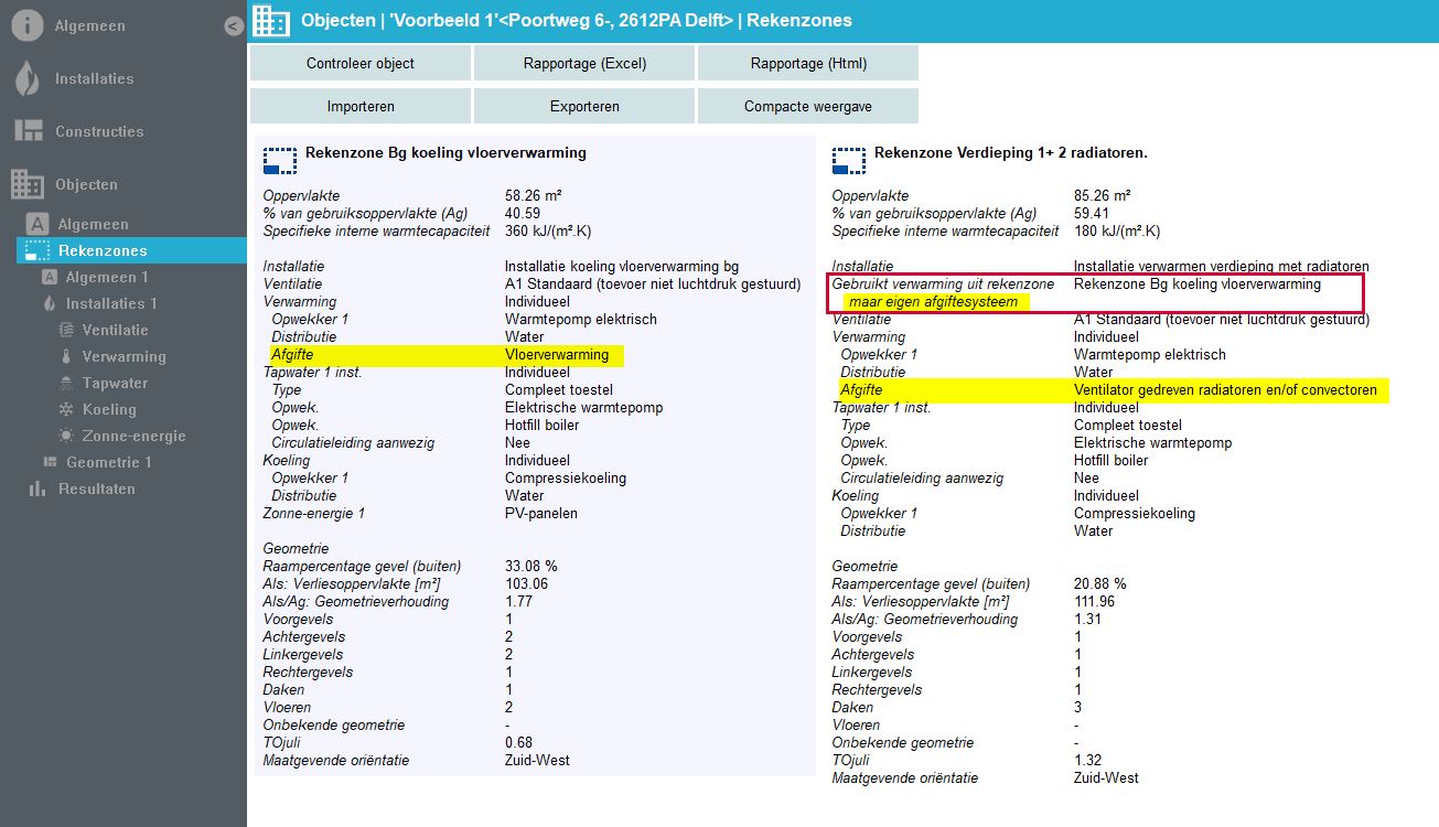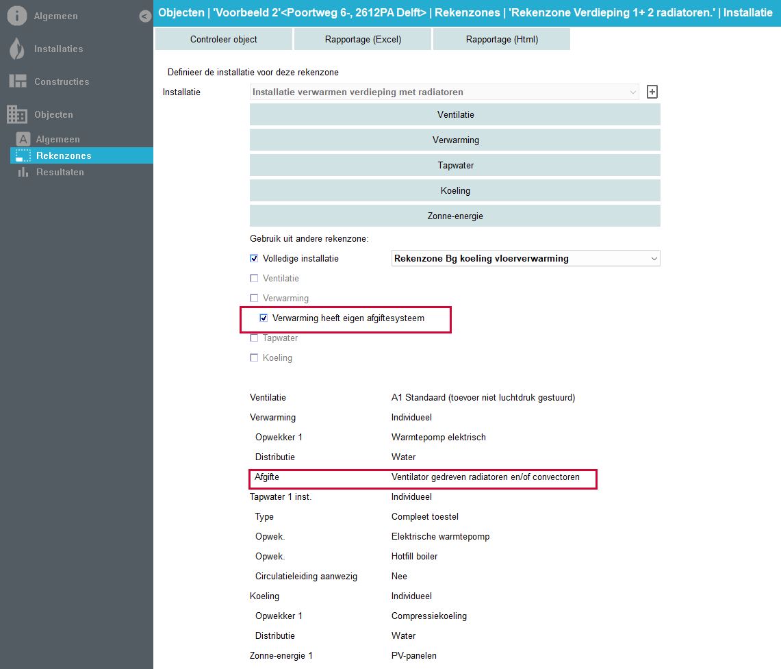 Als een gebouw meerdere rekenzones heeft, dan is het vanaf nu mogelijk om binnen hetzelfde verwarmingssysteem met een andere afgiftesysteem te rekenen, bijvoorbeeld een woning met op de begane grond vloerverwarming en op de verdiepingen radiatoren.