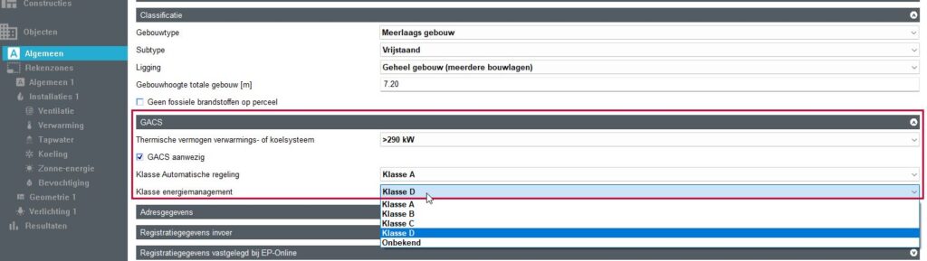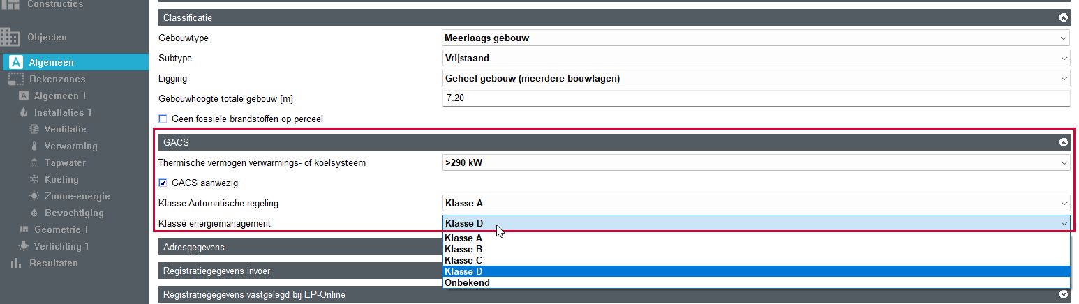 In deze paragraaf stel je de aanwezigheid van een Gebouw Automatisering en Controle Systeem (GACS) vast. Een gebouwautomatiseringssysteem heeft twee klasse aanduidingen: één voor de functionaliteit van de automatische regelingen en één voor de functionaliteit van het energiemanagement systeem. Deze klassen kunnen verschillen afhankelijk van de functionaliteit van het systeem.
