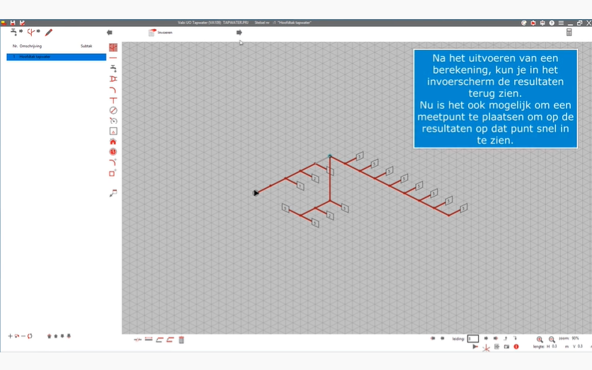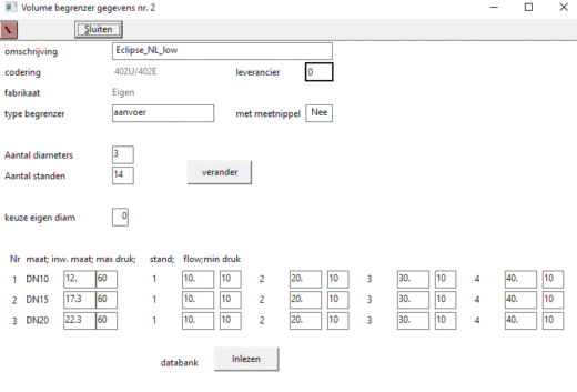 De berekening selecteert automatisch de goede inregelafsluiter bij het waterdebiet en houdt rekening met de extra mee te rekenen weerstand. Dit scheelt veel werk bij het selecteren van de goede regelafsluiter en voorkomt fouten bij het wijzigen van het stelsel.