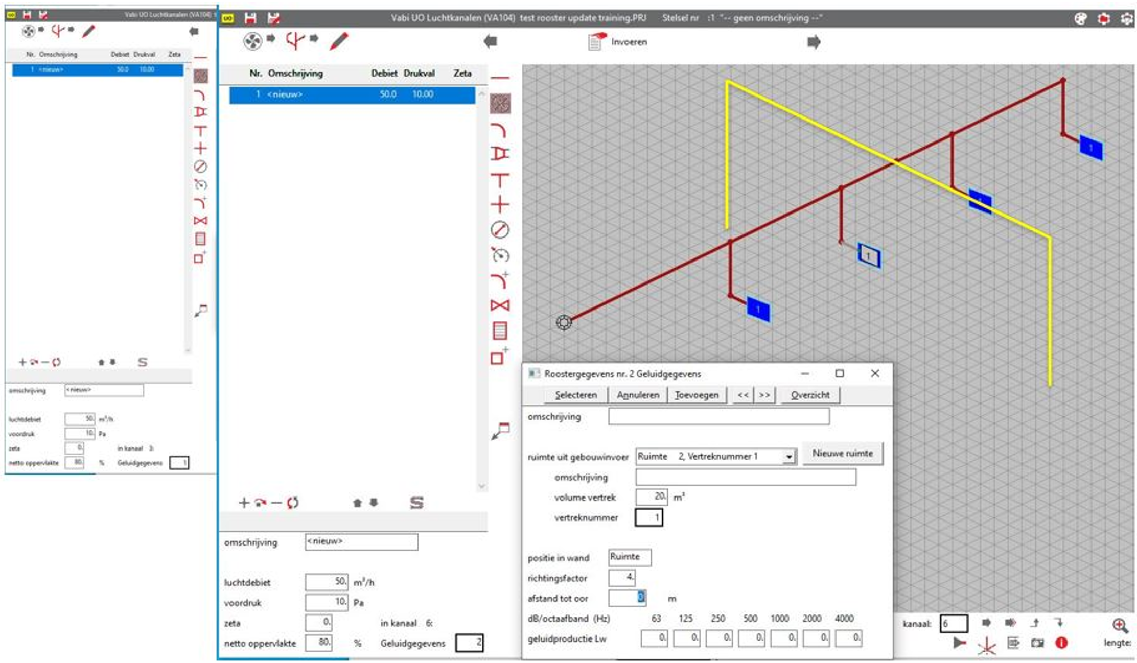 In versie 11.0 zijn een aantal nieuwe items toegevoegd. Zo is het nu mogelijk in Luchtkanalen VA104 per rooster in een ruimte de geluidgegevens op te geven en niet per roostersoort. Is in Tapwater VA109 de Circulatie berekening aangepast en krijgen leidingen in uitvoer een kleurtje afhankelijk van de diameter.