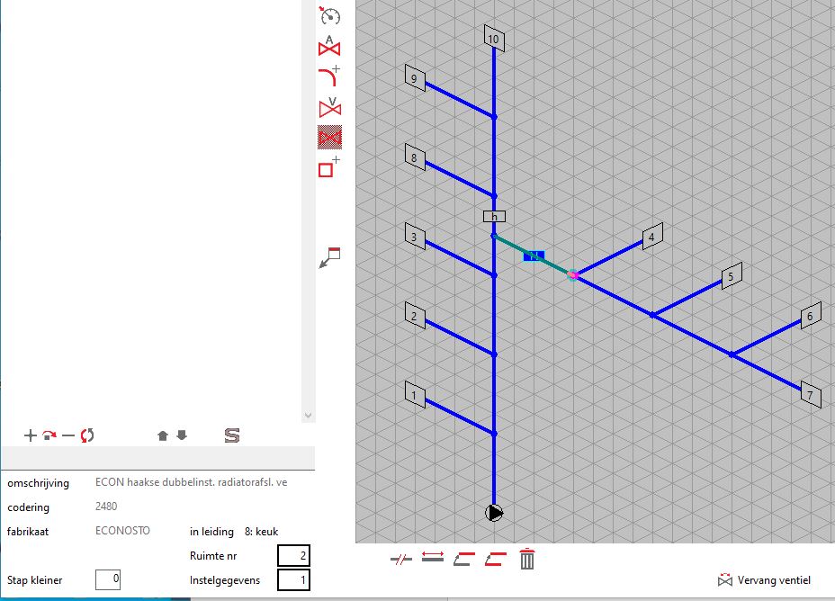 Bij VA100 Leidingnet en VA109 Tapwater kunnen nu extra gegevens per ventiel worden opgegeven;