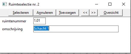 Klikken op ruimte Nr geeft het volgende scherm, waarbij het ruimtenummer en de omschrijving van de ruimte ingevuld kunnen worden.
