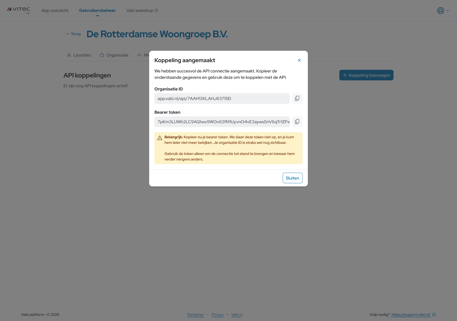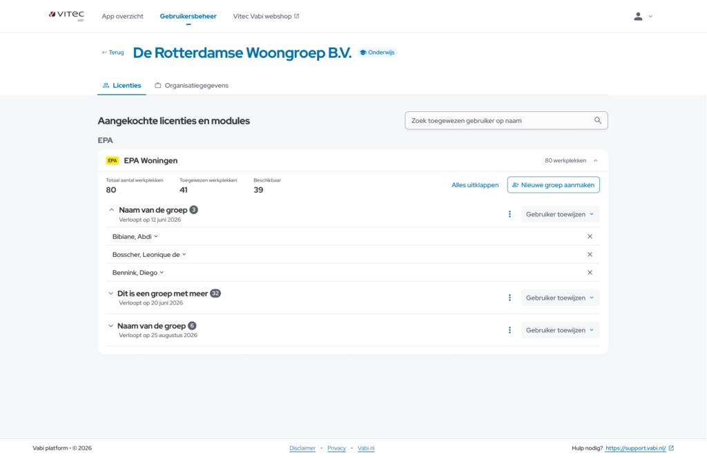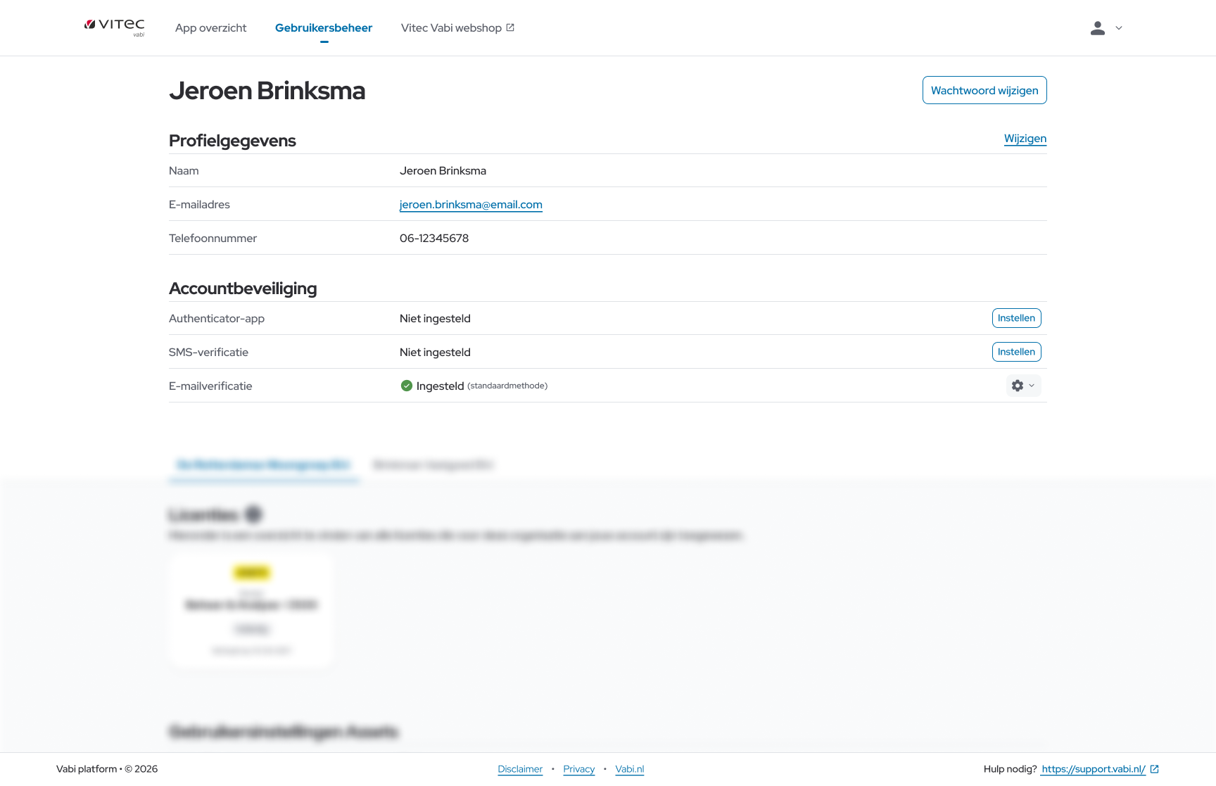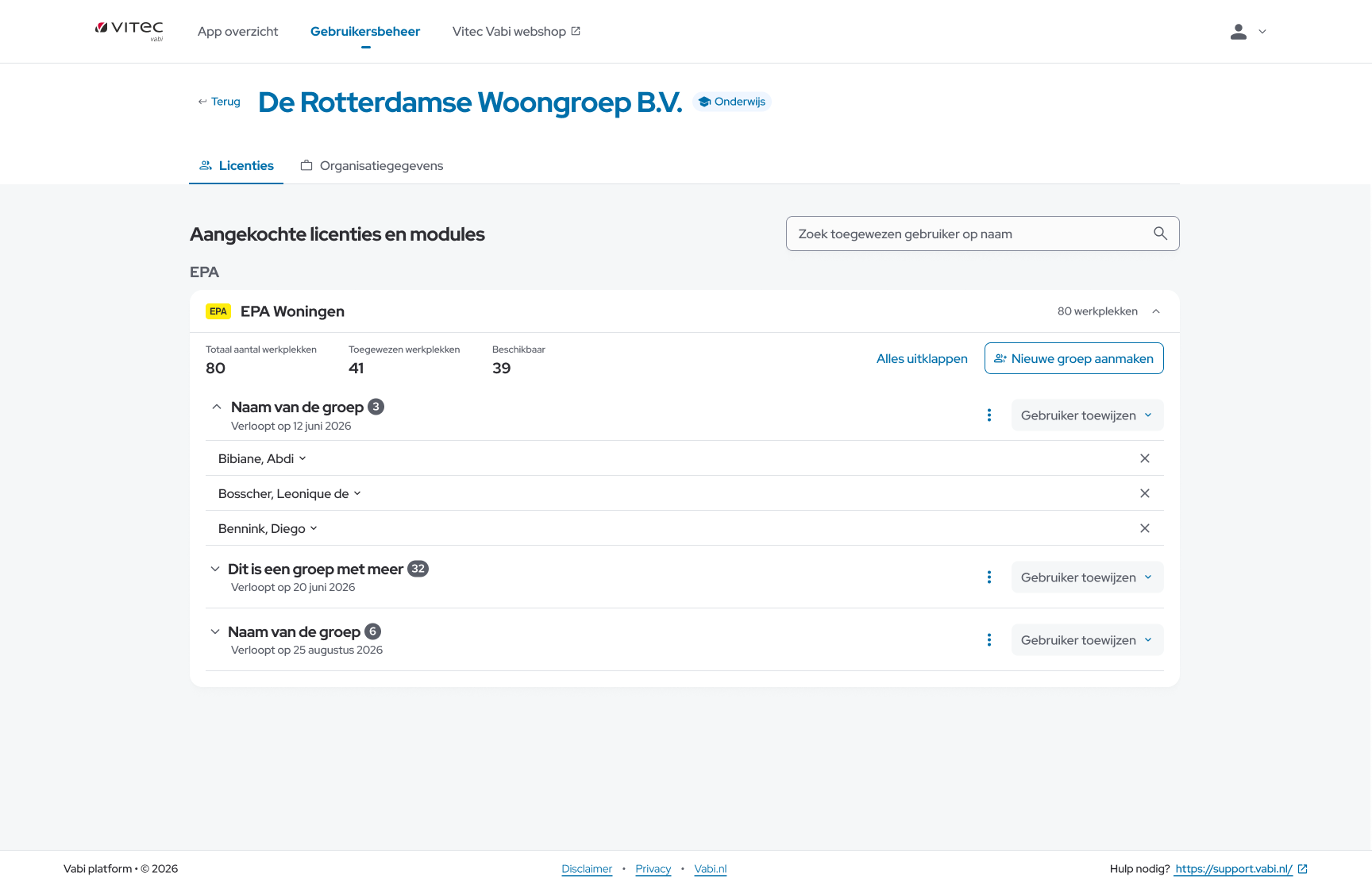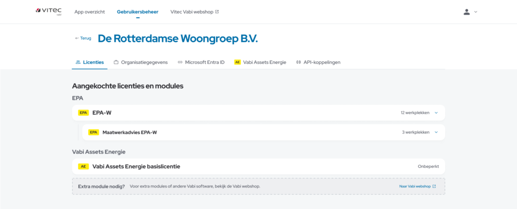- Jouw actieve Vabi-applicaties waar je een licentie voor hebt.