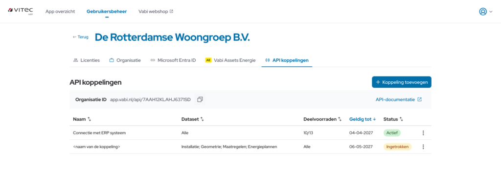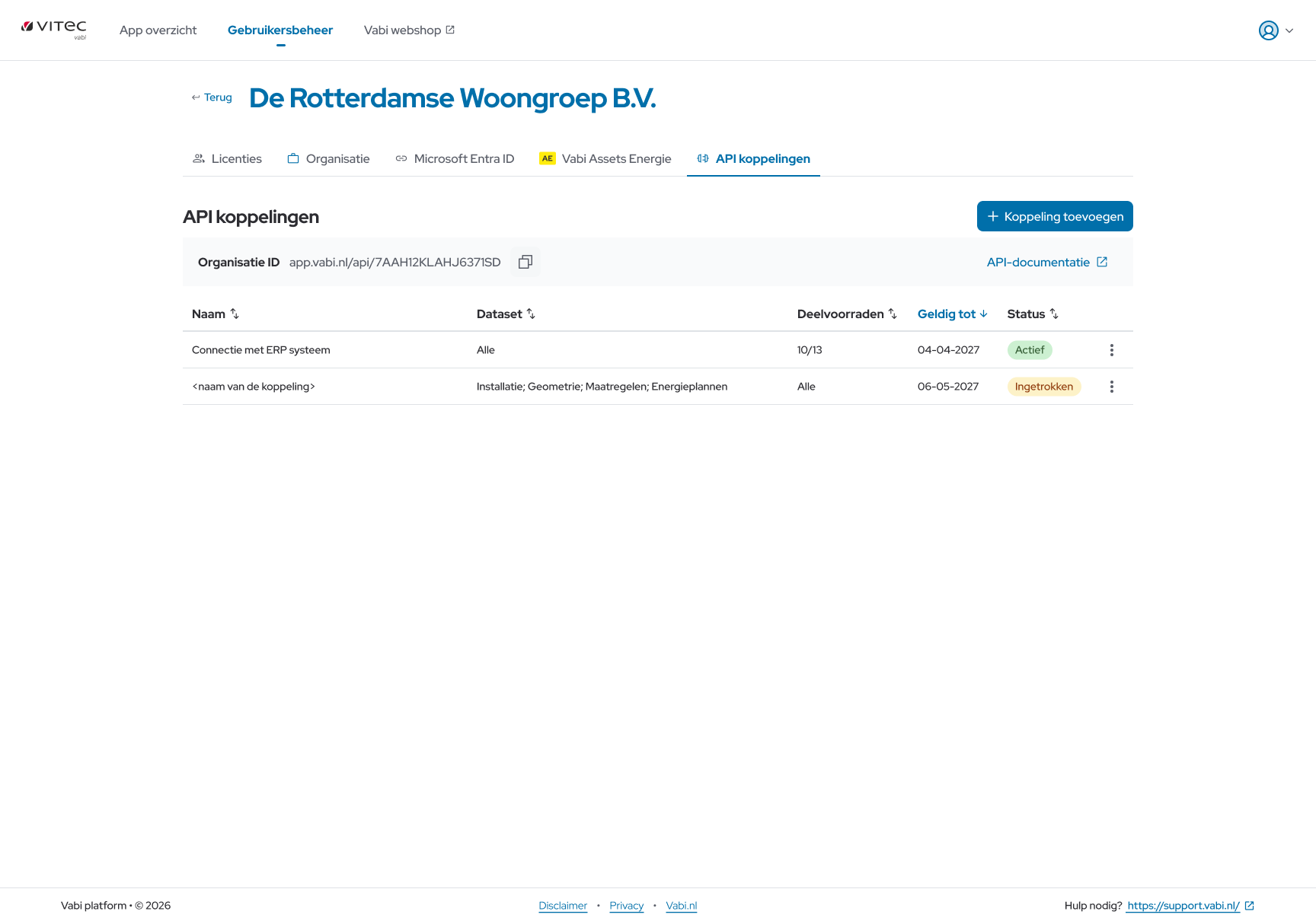- Beheer je meerdere organisaties? Dan zie je aparte tabbladen voor elke organisatie.