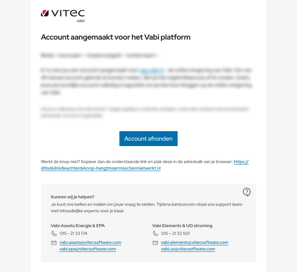 - Open de mail van Vabi platform (onderwerp: ‘Account aangemaakt voor het nieuwe Vabi platform’)