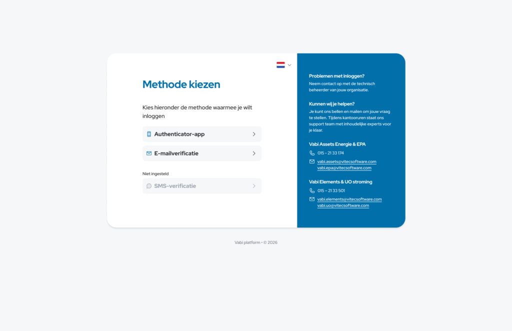 - E-mailverificatie blijft altijd beschikbaar en kan niet worden uitgeschakeld.