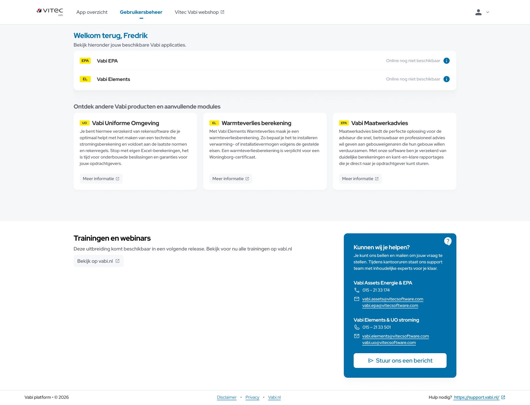 Voor het nieuwe klantportaal heeft elke gebruiker een persoonlijk account nodig. Met dit account kun je ook inloggen in de Vabi-software.